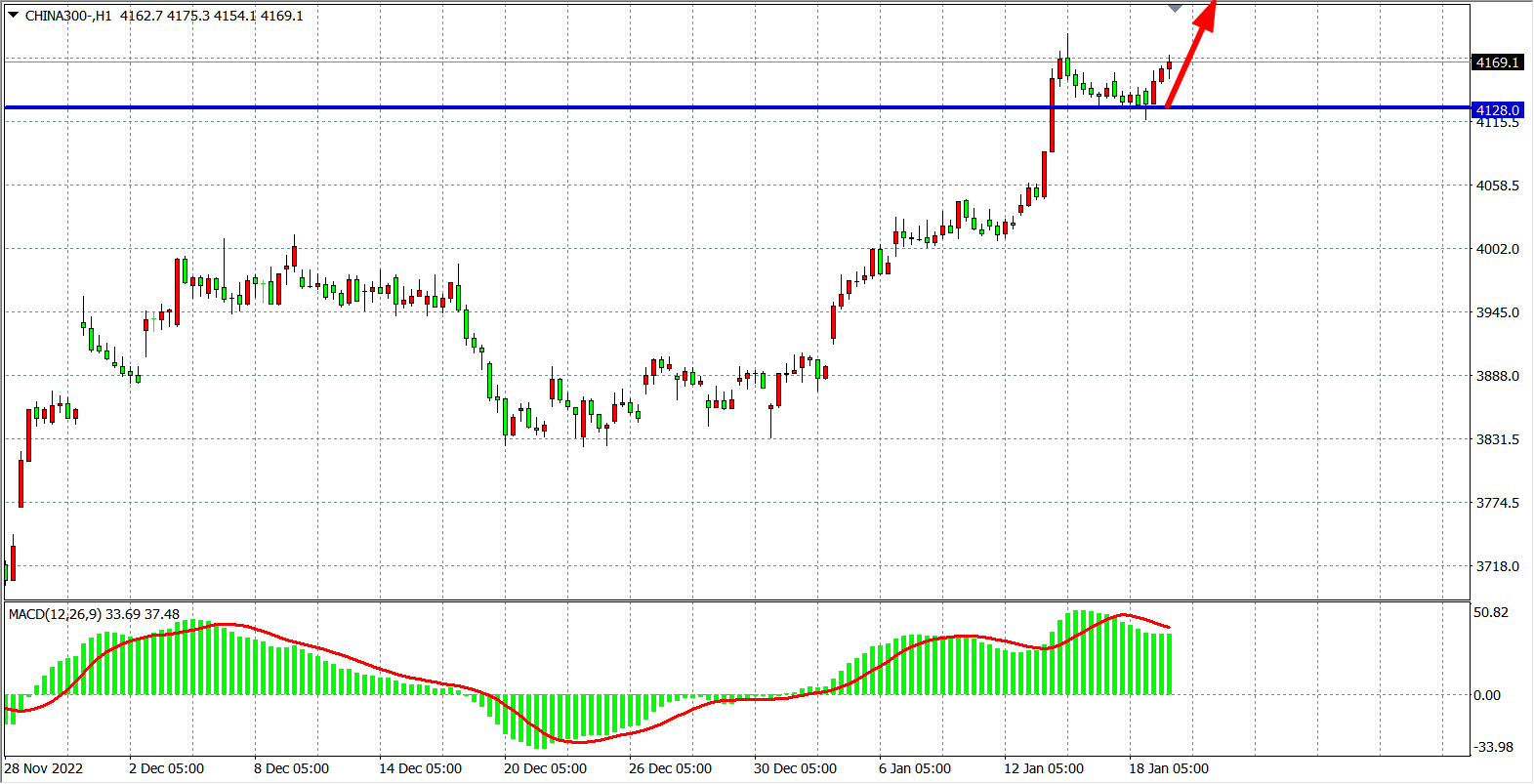1小时图看,沪深300在高位进一步反弹,多头趋势有望重新走强,同时MACD在零轴上维持较均匀放量状态,当前支撑上移4128附近,目标看4200-4250。