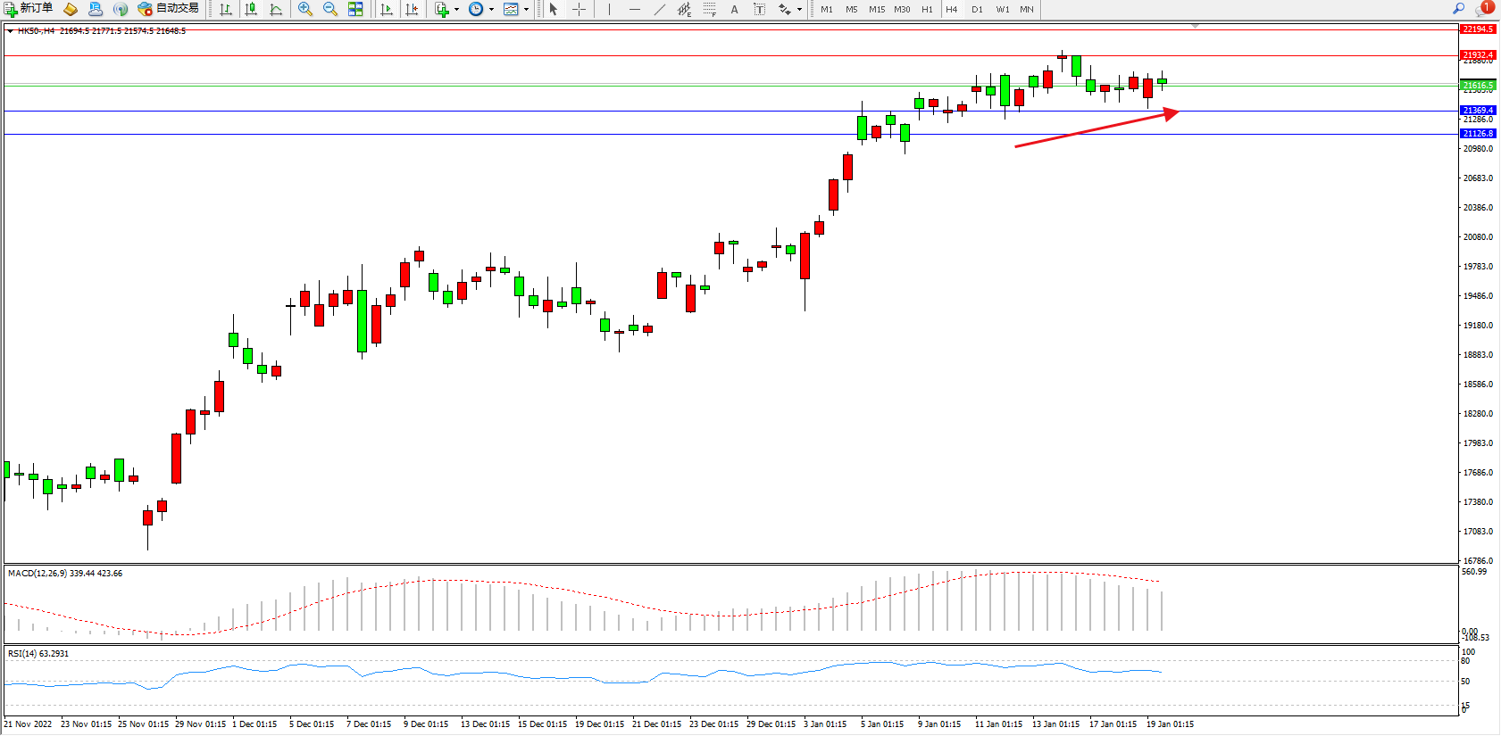 恒指HK50 4小时图