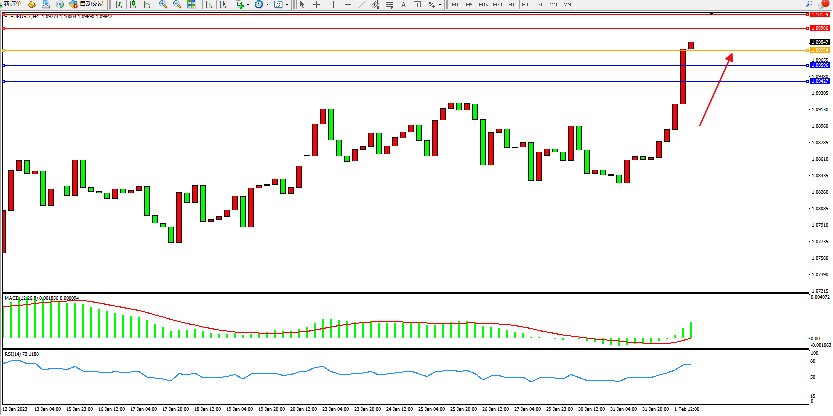 4小时图看:市场看涨情绪涌现,短期多头有继续向上攀升态势,MACD指标处于多头区域拉升,RSI指标处于多头区域不断上扬中;