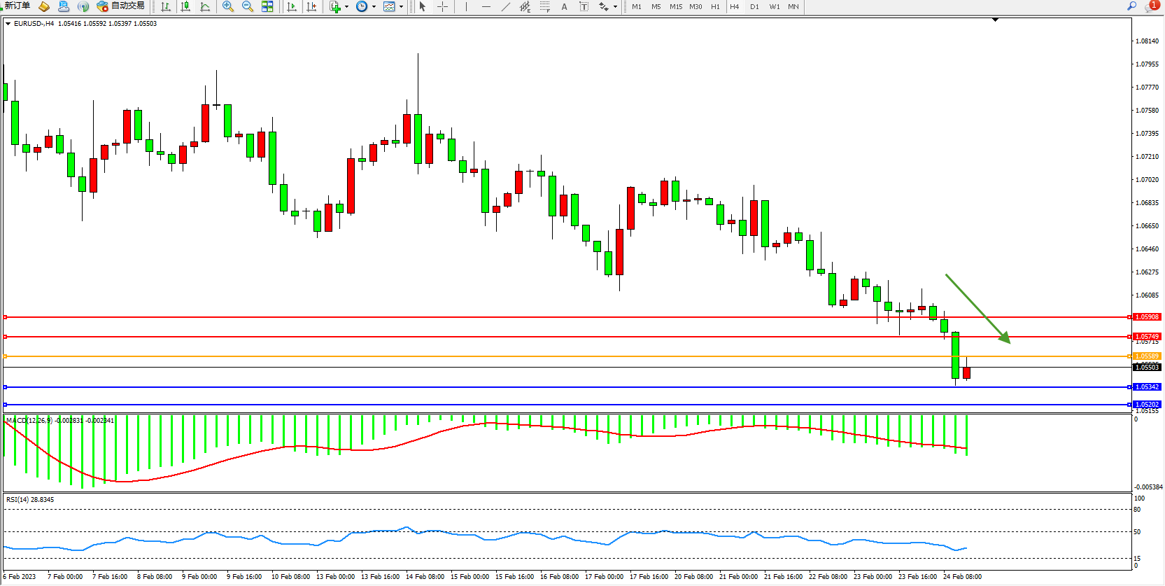 4小时图看:低位空头动力持续下移,短期跌势未见止步,市场空头情绪不断涌现,MACD指标处于空头区域持续下移,RSI指标处于空头区域低位整理;
