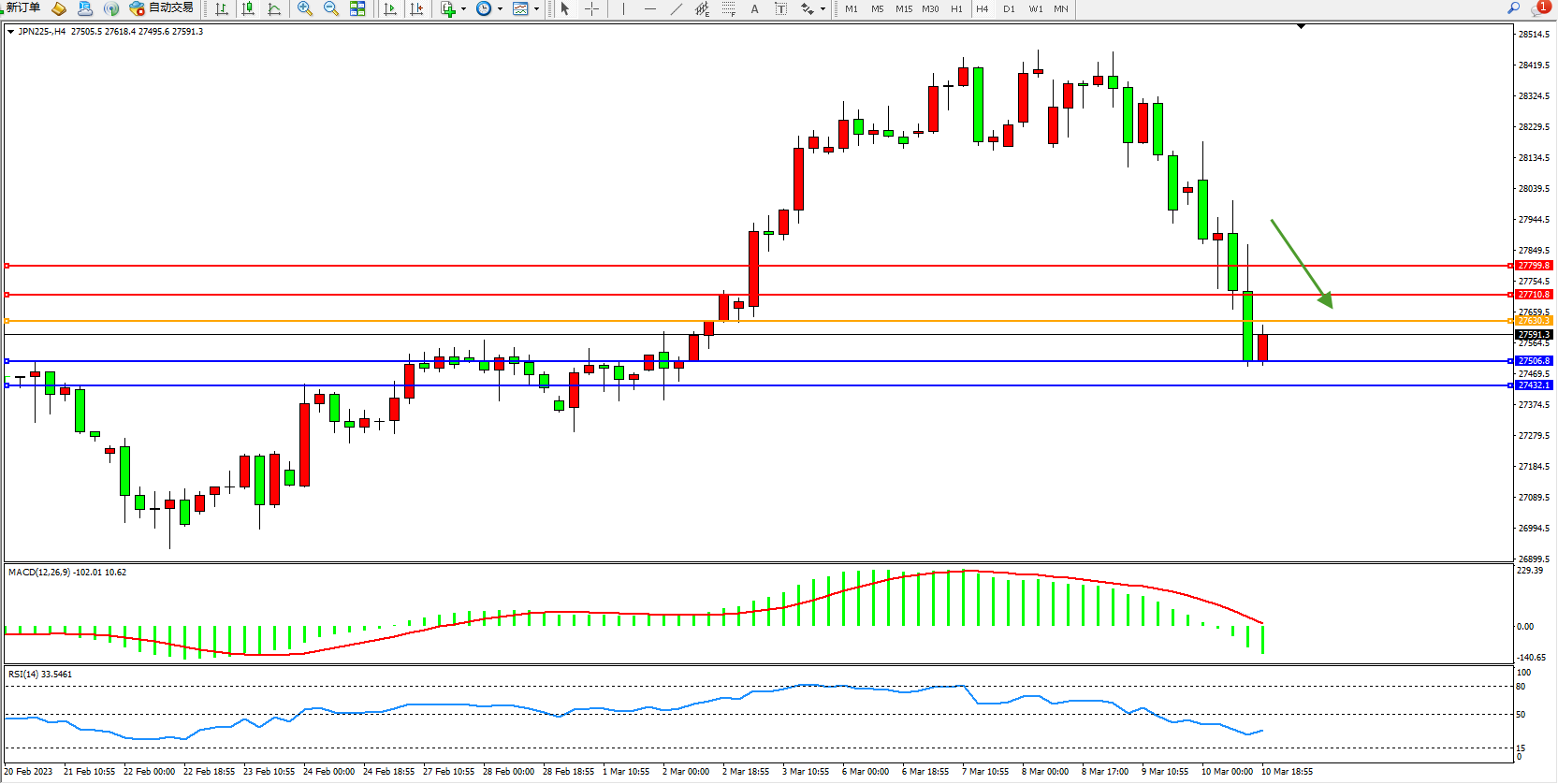 日经225指数3月10日(周五)收盘下跌480.65点,跌幅1.68%,报28142.50点。日本央行行长黑田东彦:日本经济正在复苏,但不确定性非常高。如有必要,将毫不犹豫地进一步放松货币政策。预计利率将维持在目前的低位或更低水平。