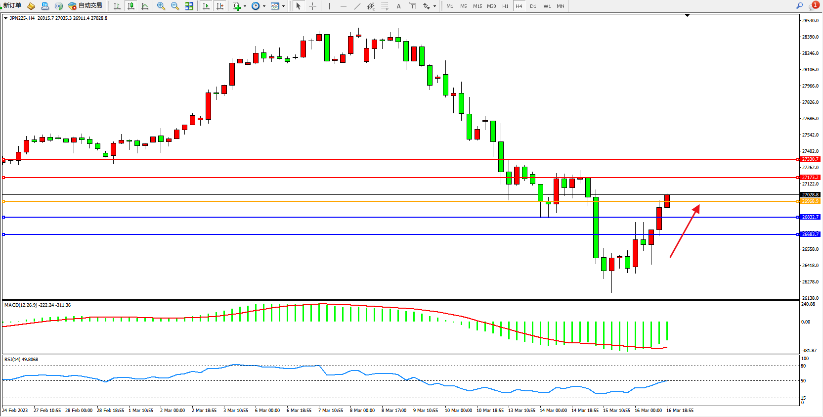 日经225指数3月16日(周四)收盘下跌259.98点,跌幅0.95%,报26969.50点。日本银行游说负责人称:目前没有迹象表明日本金融系统受到瑞士信贷信心危机的影响,欧洲银行通常有稳定的资本比率,日本银行也是如此。