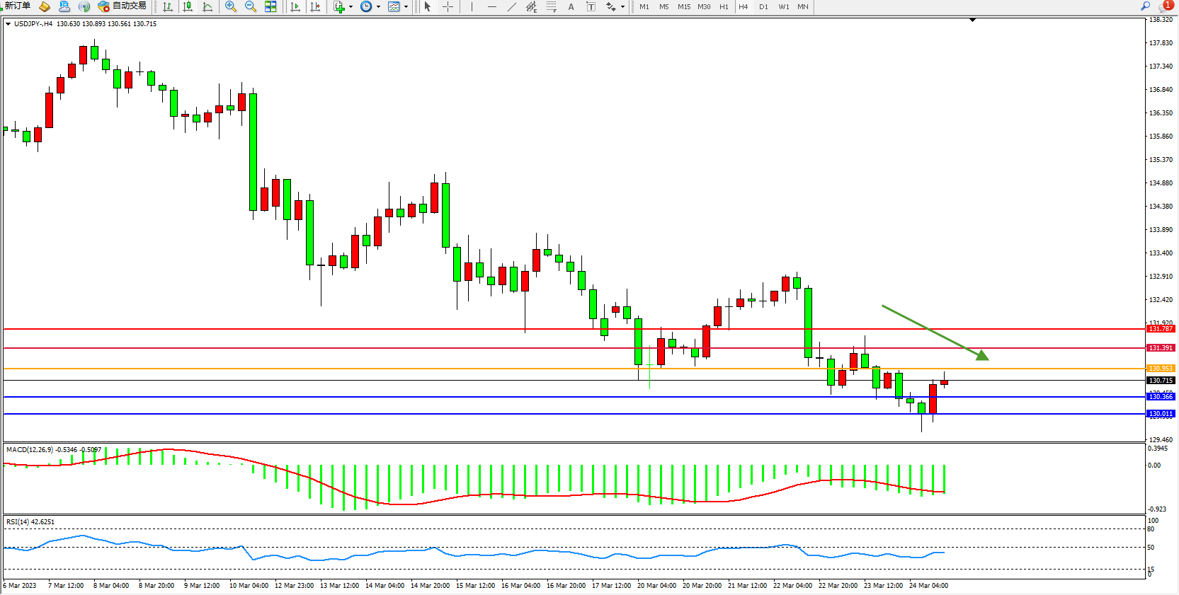 交易策略:130.953下方看跌,目标130.366 130.011