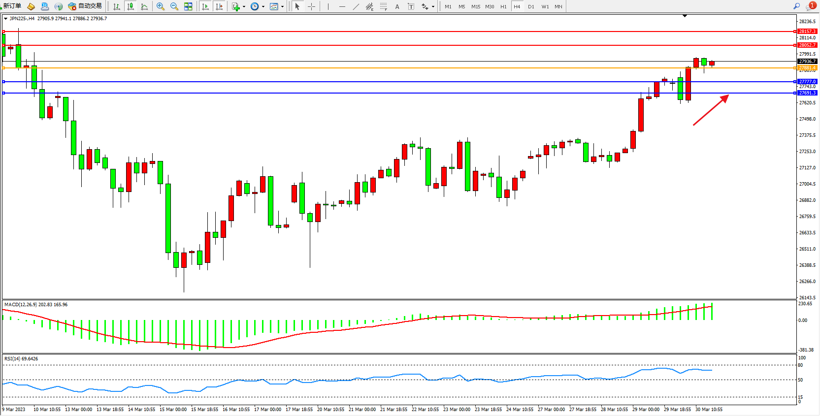 日经225指数3月30日(周四)收盘下跌145.28点,跌幅0.52%,报27738.50点。日本央行可能在6月开始将其超宽松的货币政策正常化,首先是调整其收益率曲线控制,然后再结束负利率政策。