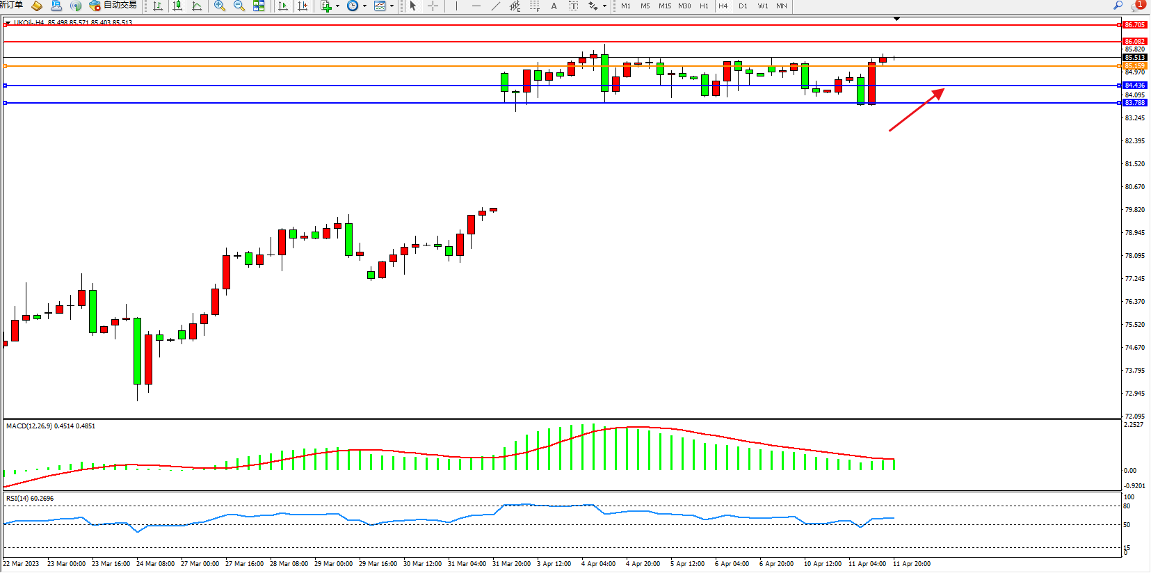 布油UKOil——4小时K线图显示: