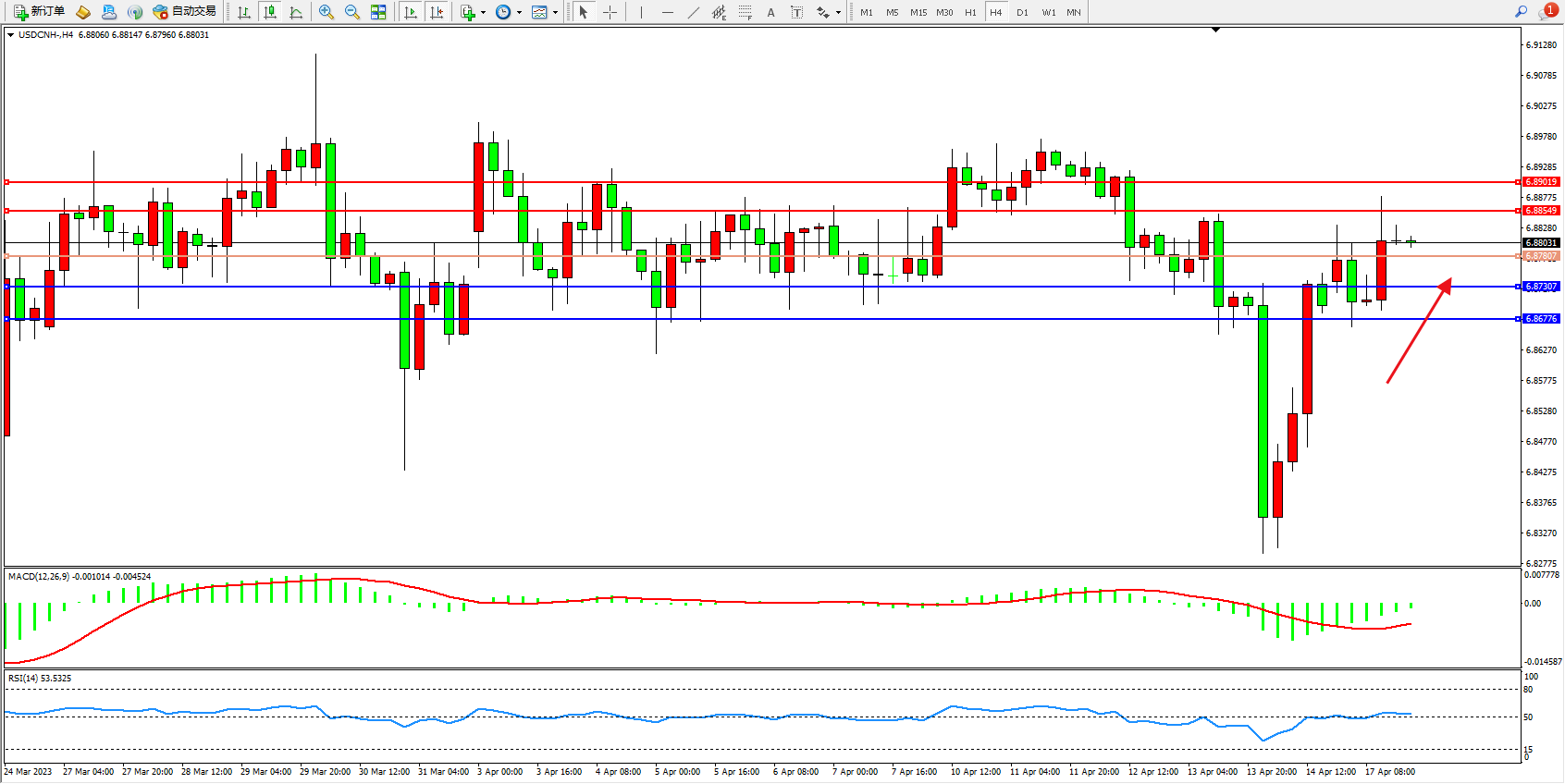 USDCNH:震荡上移