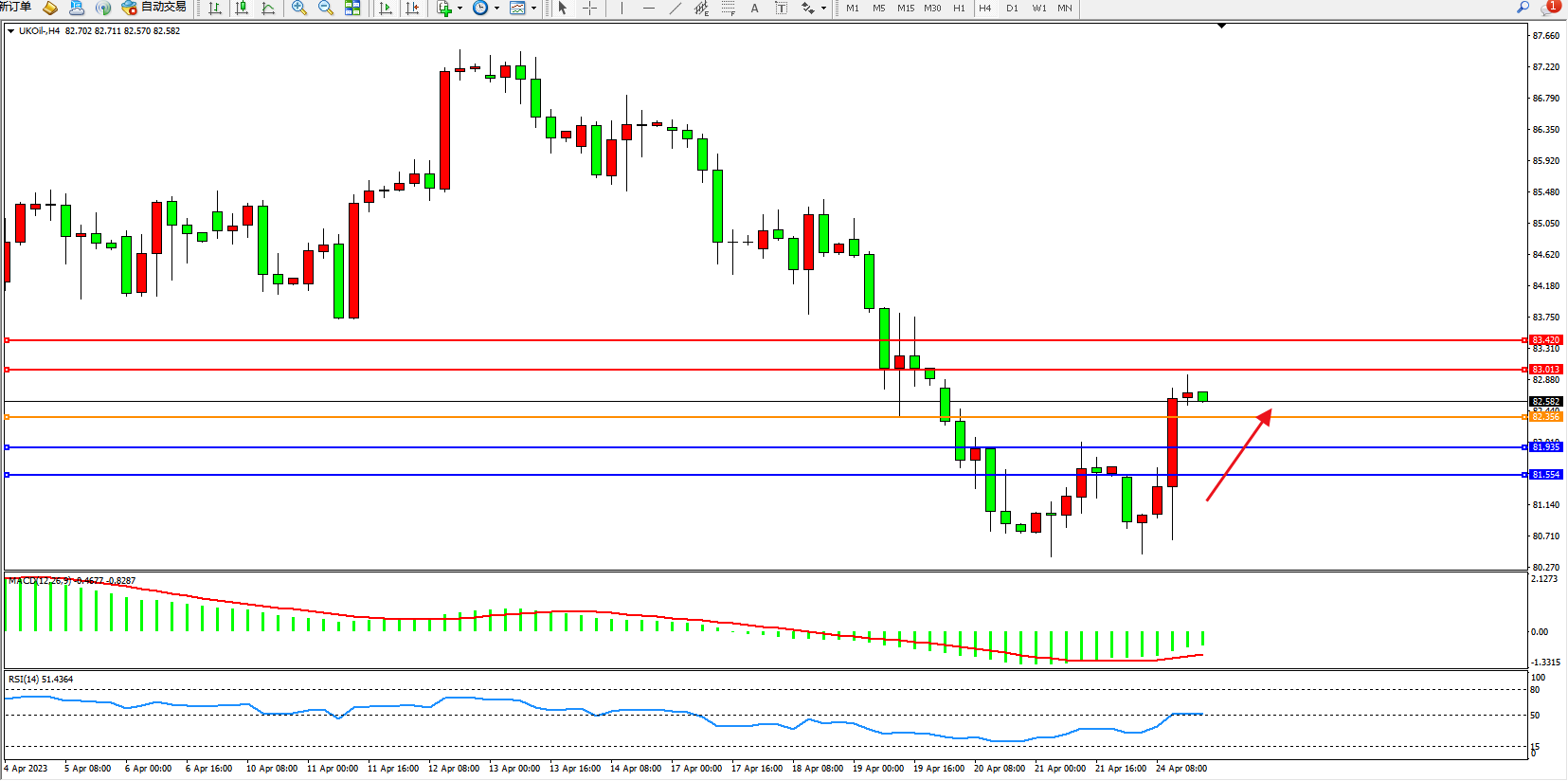 布油UKOil——4小时K线图显示: