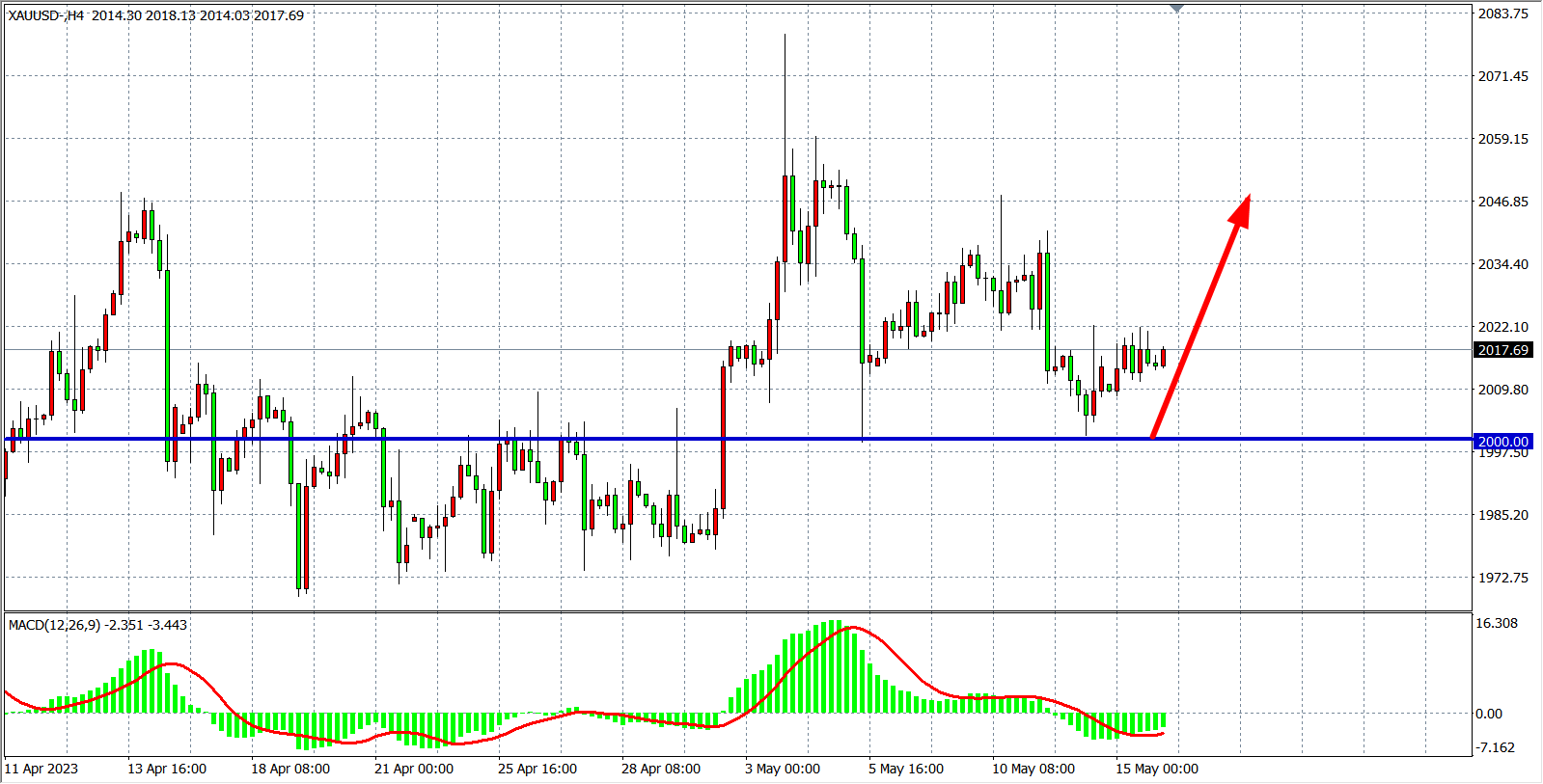现货黄金XAUUSD 四小时图