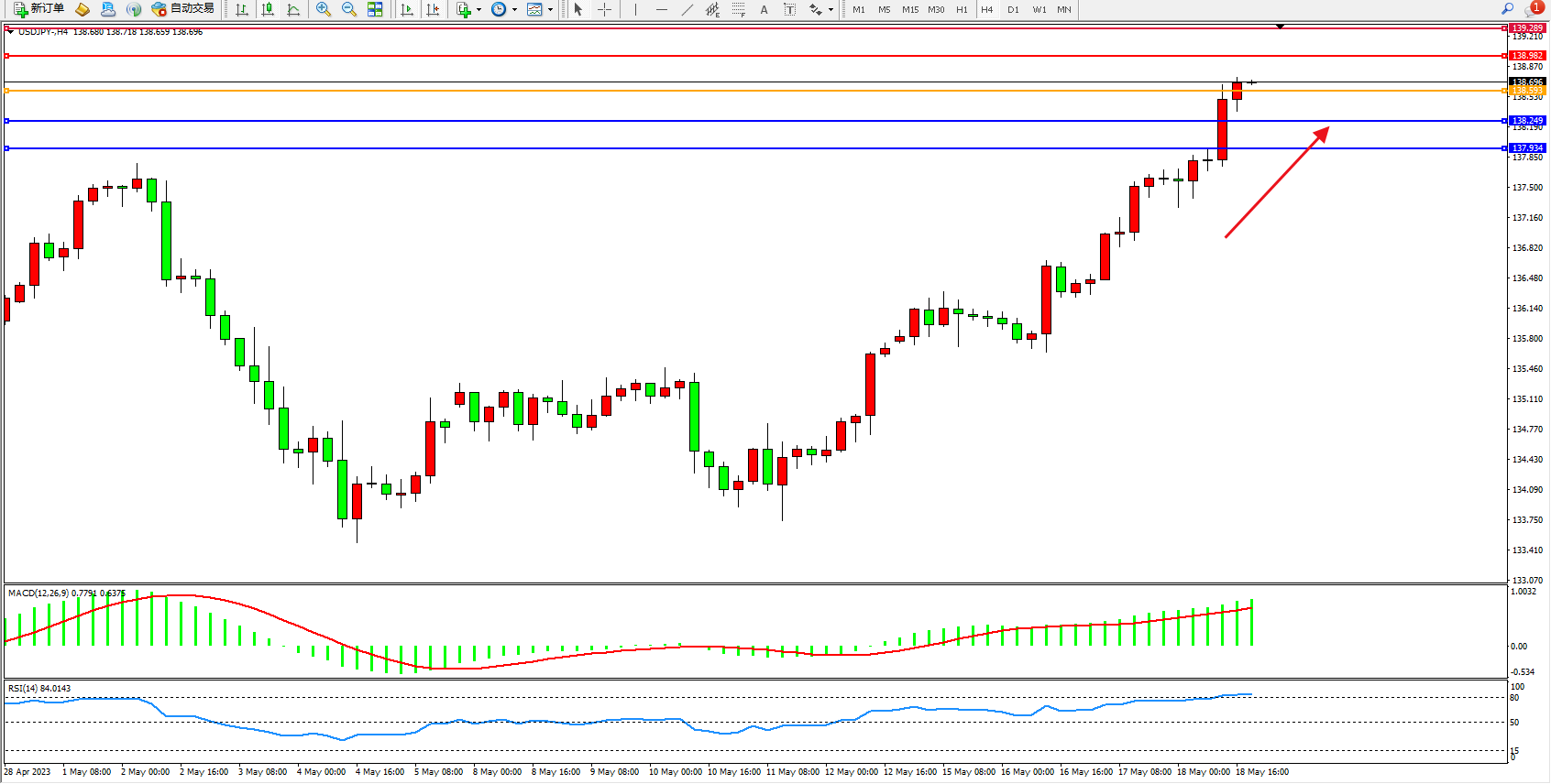 交易策略:138.593上方看涨,目标138.982 139.289