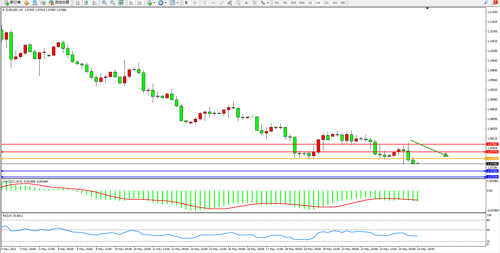 欧元兑美元维持1.07486附近震荡,市场对美联储降息的押注被推后,押注利率将在更长时间内保持高位。欧元区制造业的急剧萎缩,削弱了服务业推动下的经济增长势头。