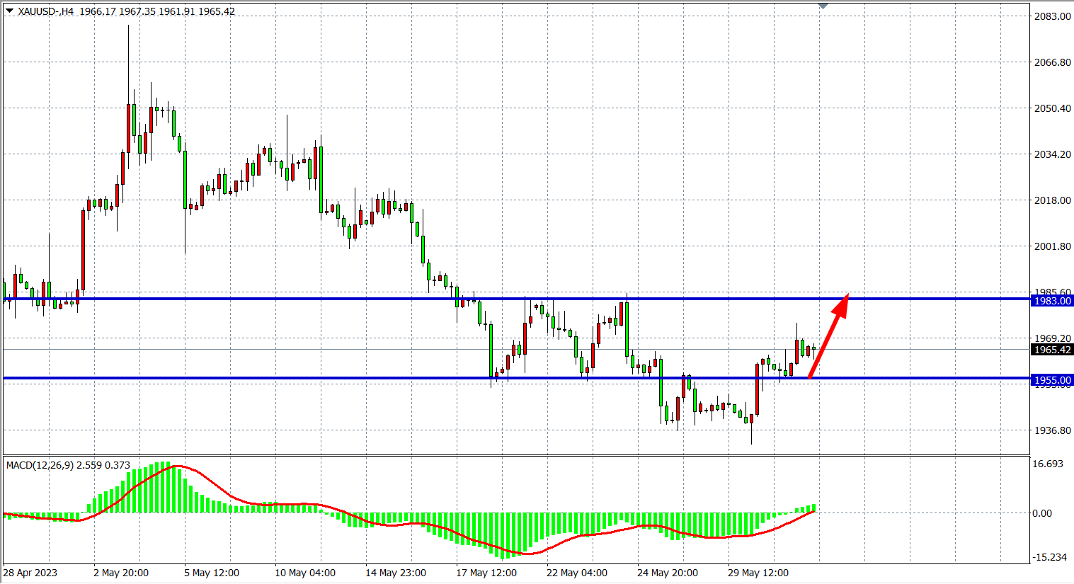 现货黄金XAUUSD 四小时图