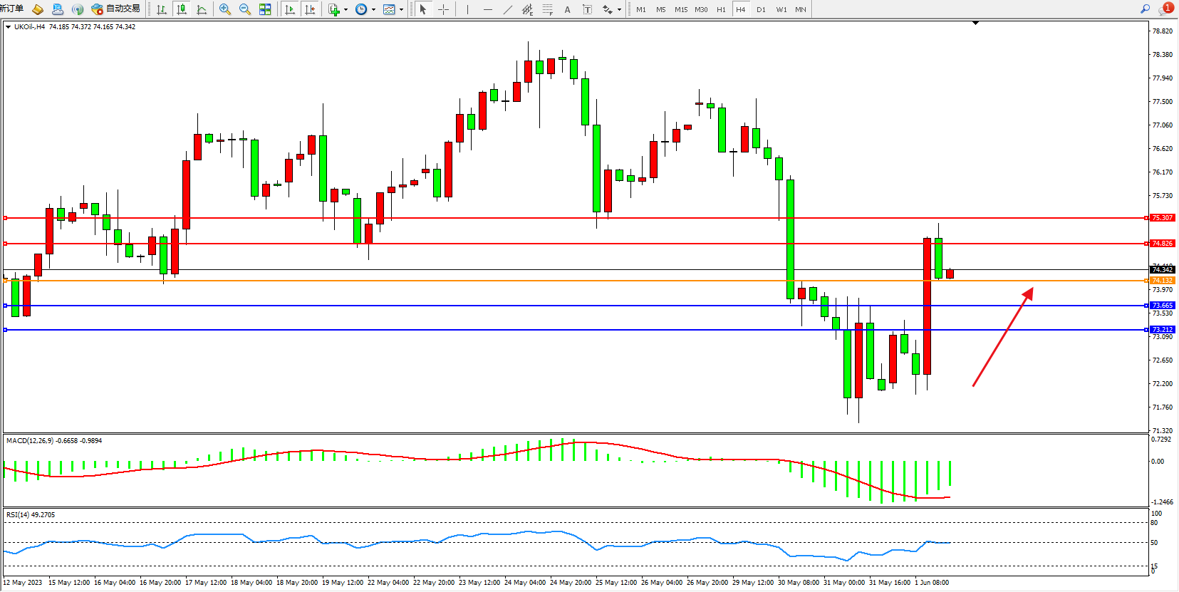 阻力位:74.826  75.307