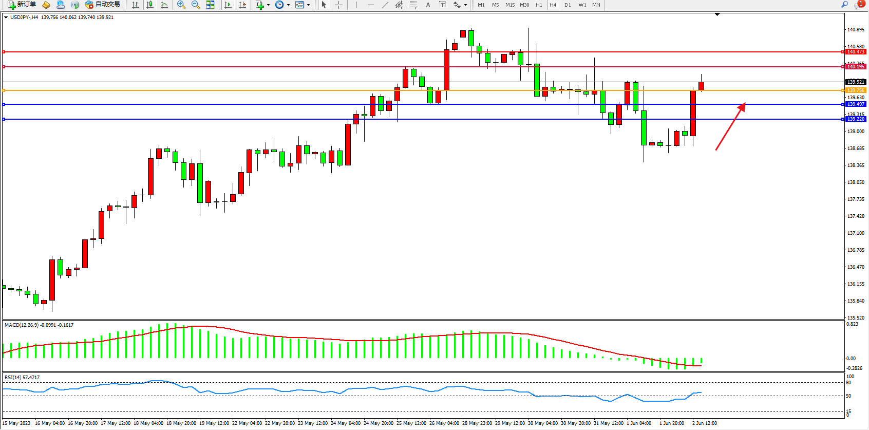 美元兑日圆维持139.921附近震荡,日本今年第一季经济增速可能高于最初预期。第一季国内生产总值(GDP)环比年率为增长1.9%,高于初值的增长1.6%。预计资本支出增长1.3%,超过初估的增长0.9%,这将是GDP数据上修的主要驱动因素。