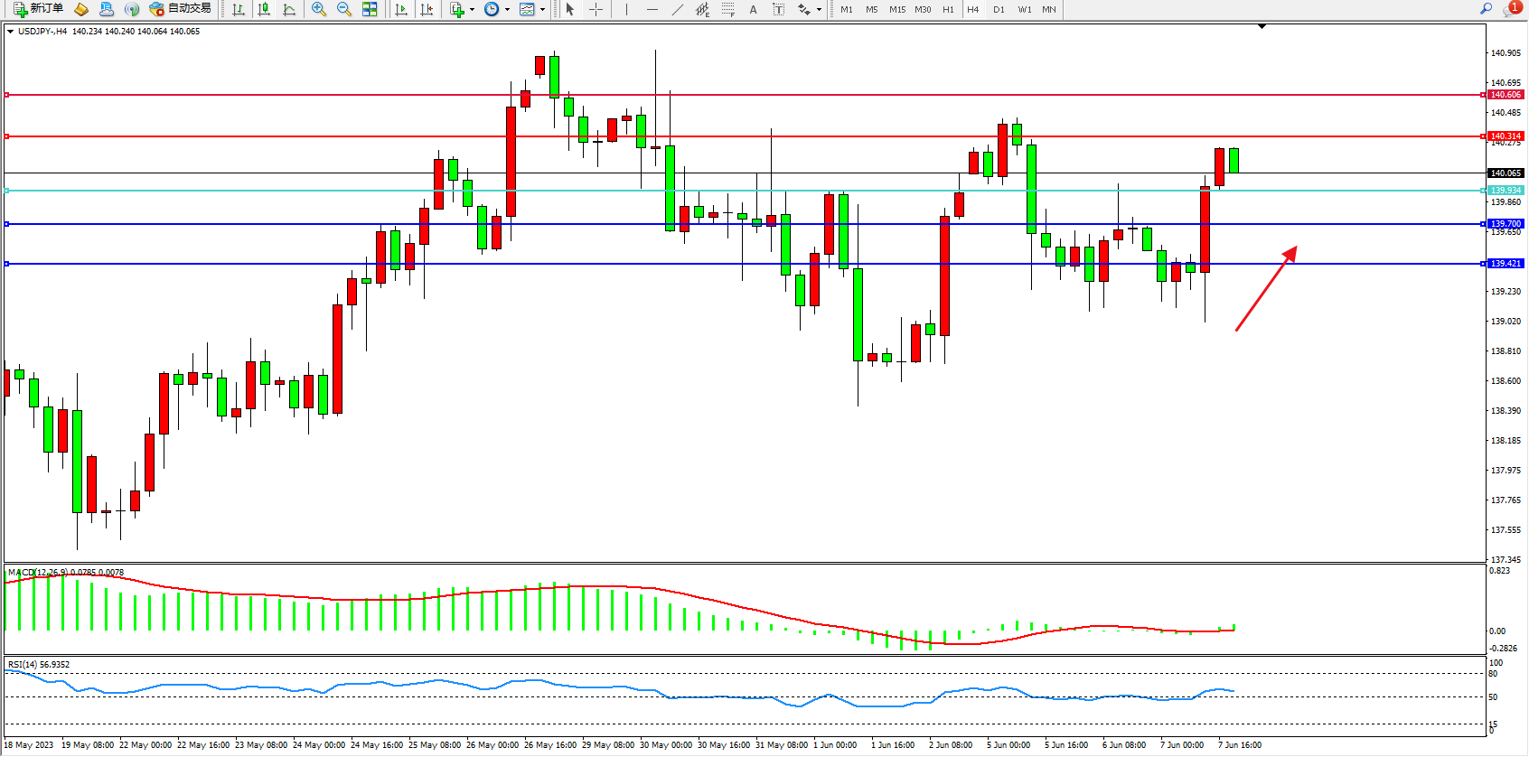 阻力位:140.314  140.606