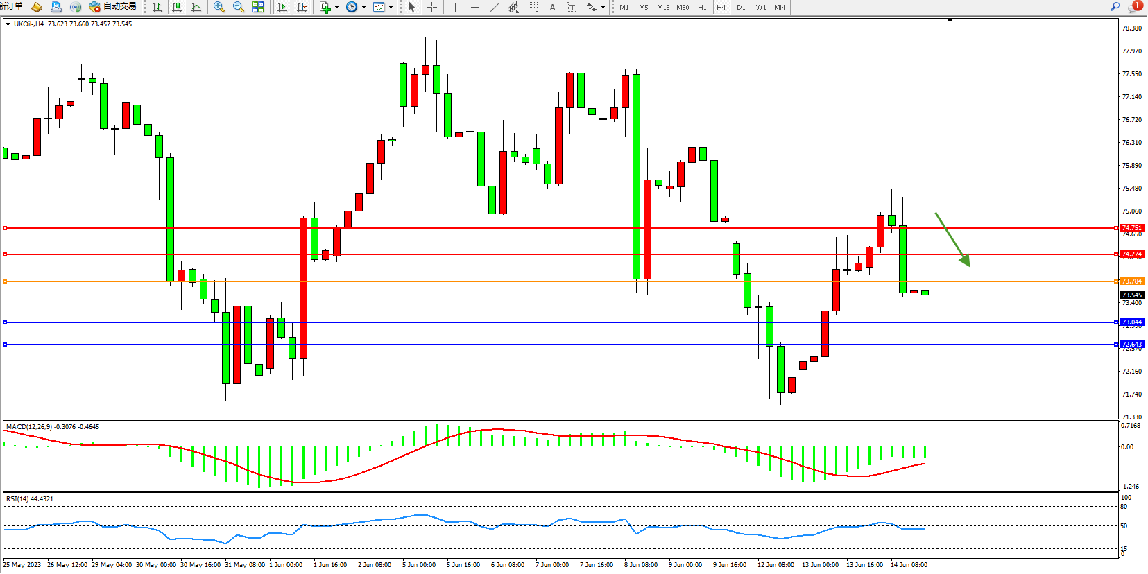 布油维持73.545附近震荡,EIA报告:除却战略储备的商业原油库存增加790万桶至4.671亿桶,增幅1.7%,06月09日当周美国国内原油产量不变,为1240.0万桶/日。