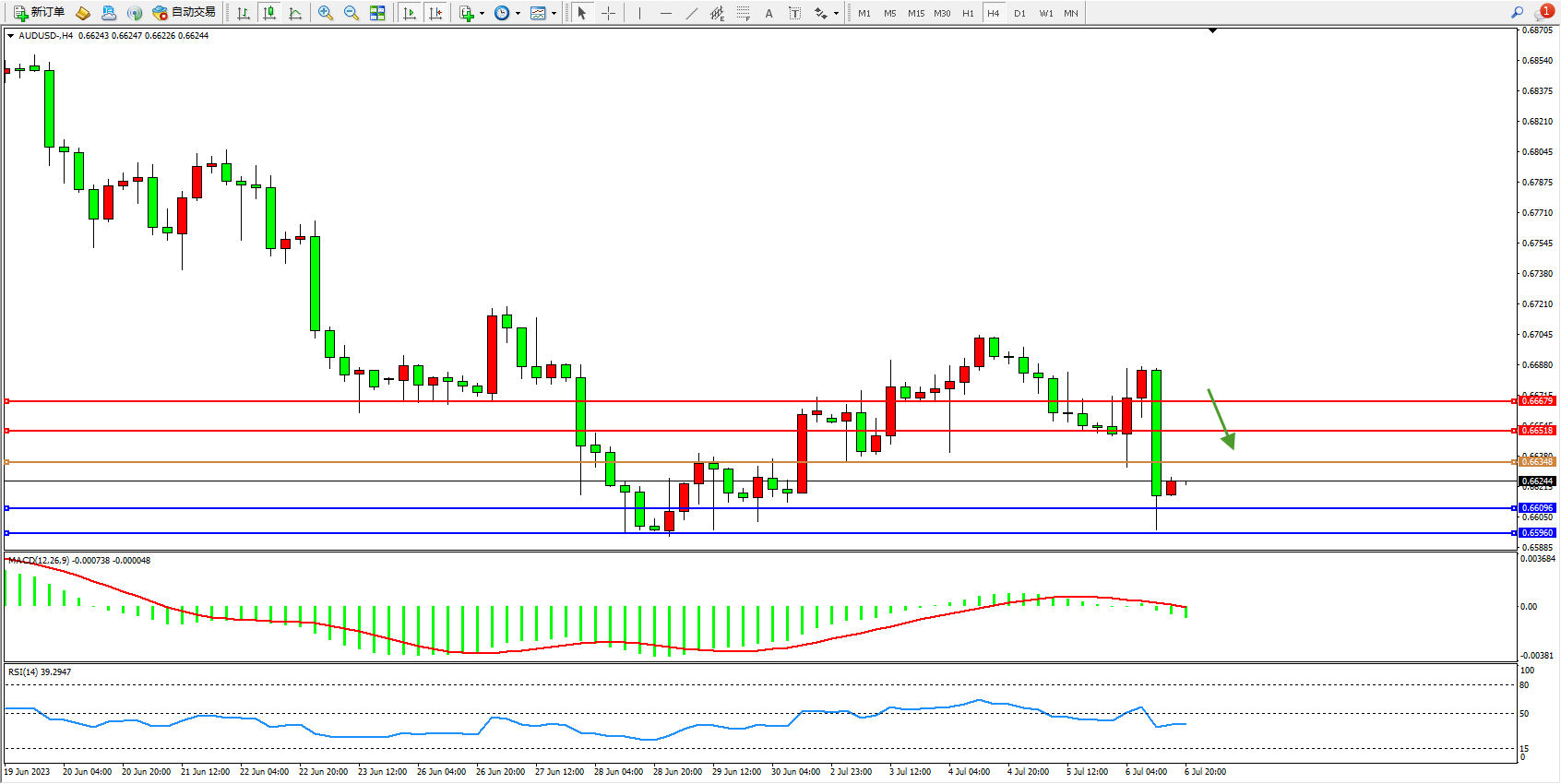 澳元兑美元维持0.66244附近震荡,澳洲联储7月暂停了加息,但是绝大多数经济学家认为澳洲联储将在8月加息25基点。