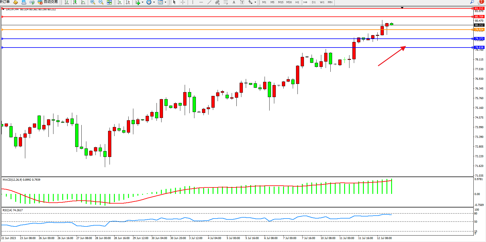 布油维持80.212附近震荡,美国至7月7日当周EIA原油库存 594.6万桶,预期48.3万桶,前值-150.8万桶。俄克拉荷马州库欣原油库存 -160.5万桶,前值-40万桶。