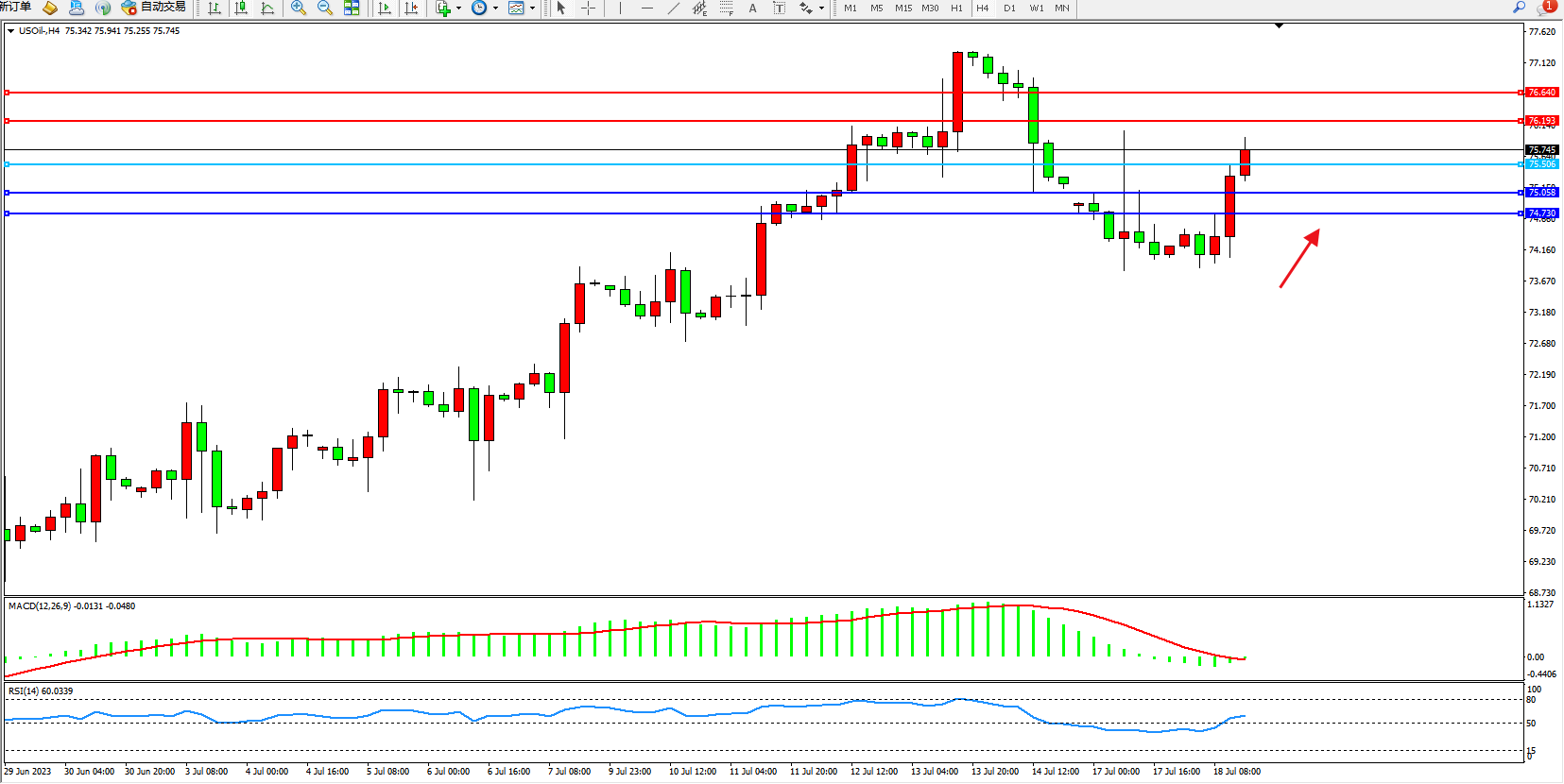 原油USOil——4小时K线图显示: