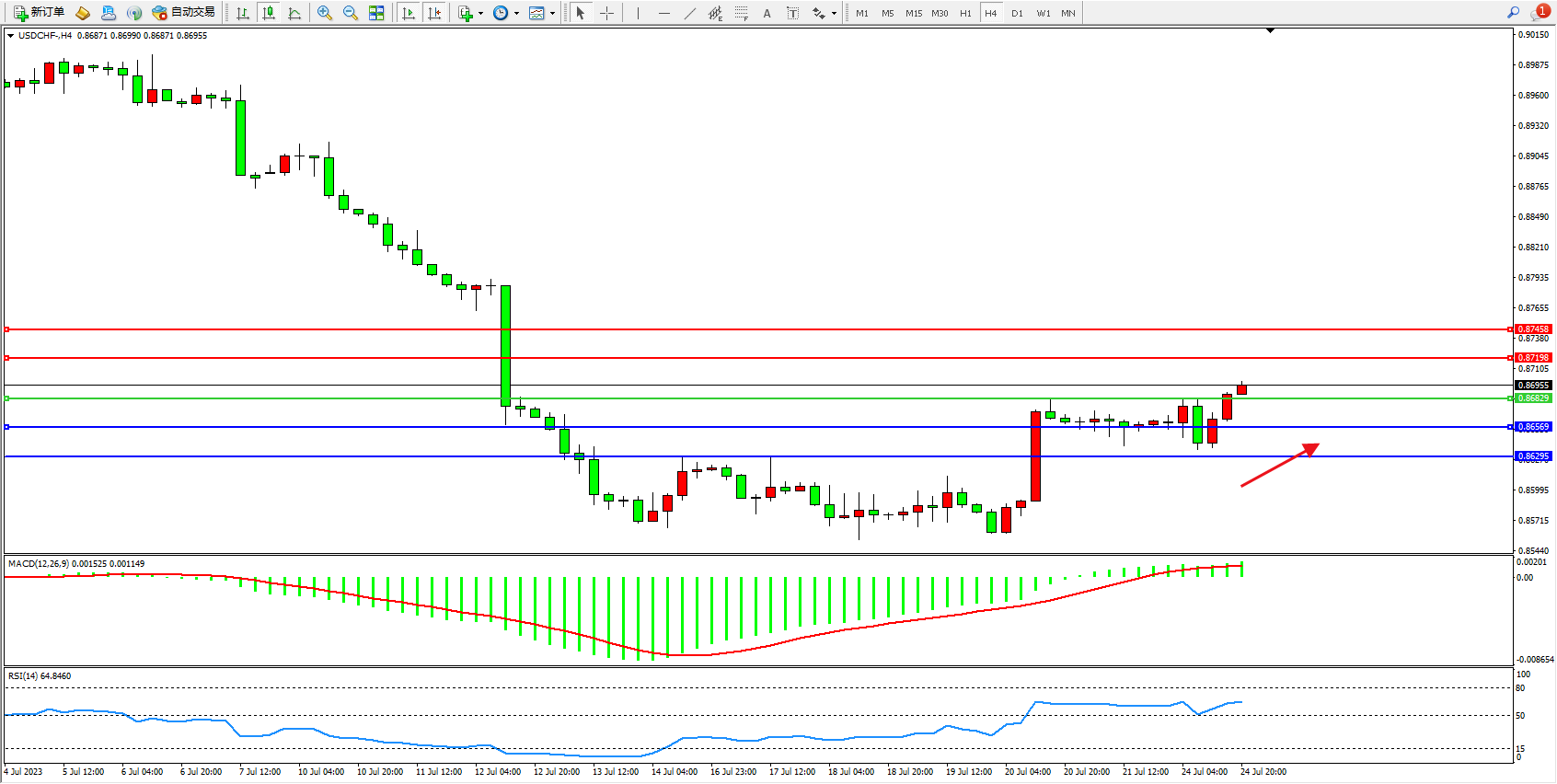 交易策略:0.86829上方看涨,目标0.87198  0.87458