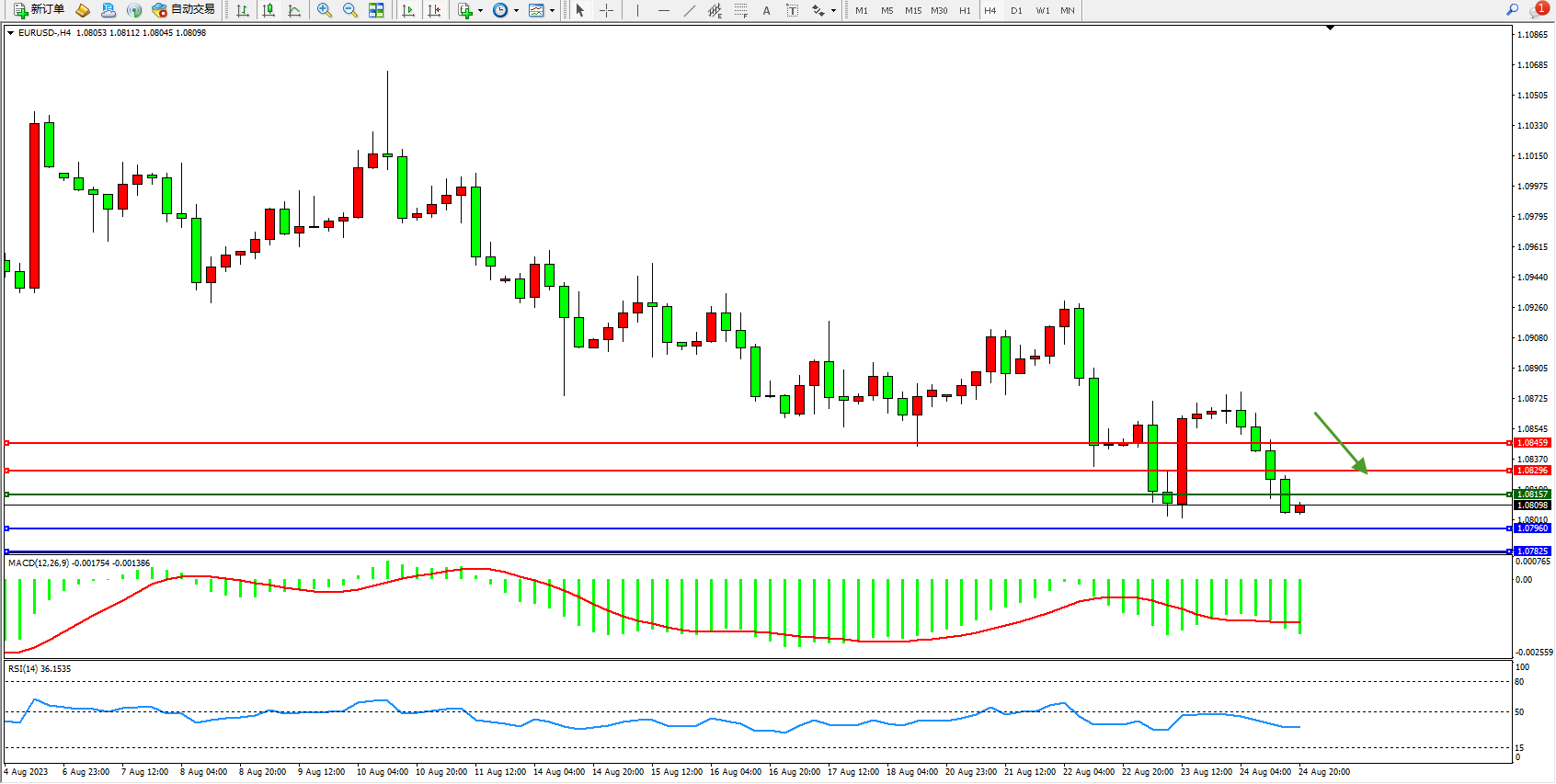 交易策略:1.08157下方看跌,目标1.07960 1.07825