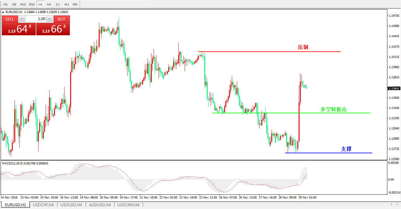 基本面简析:美联储主席鲍威尔讲话一改鹰派作风,有鸽派倾向,暗示美联储加息接近尾声,美元急挫,欧美强势上行。