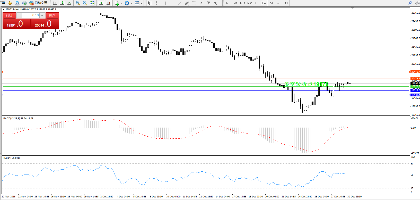 日经指数JPN225——4小时K线图: