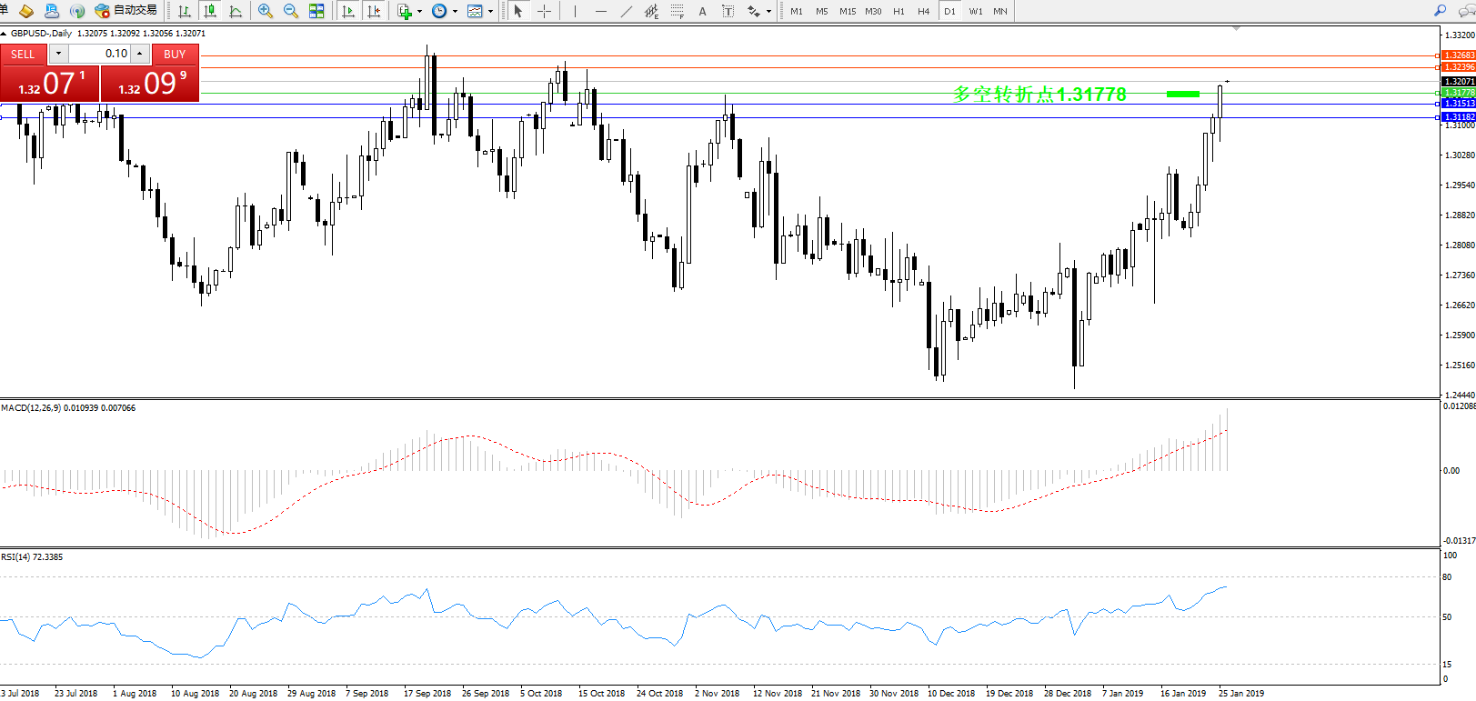 交易策略:1.31778上方看涨,目标1.32396、1.32683