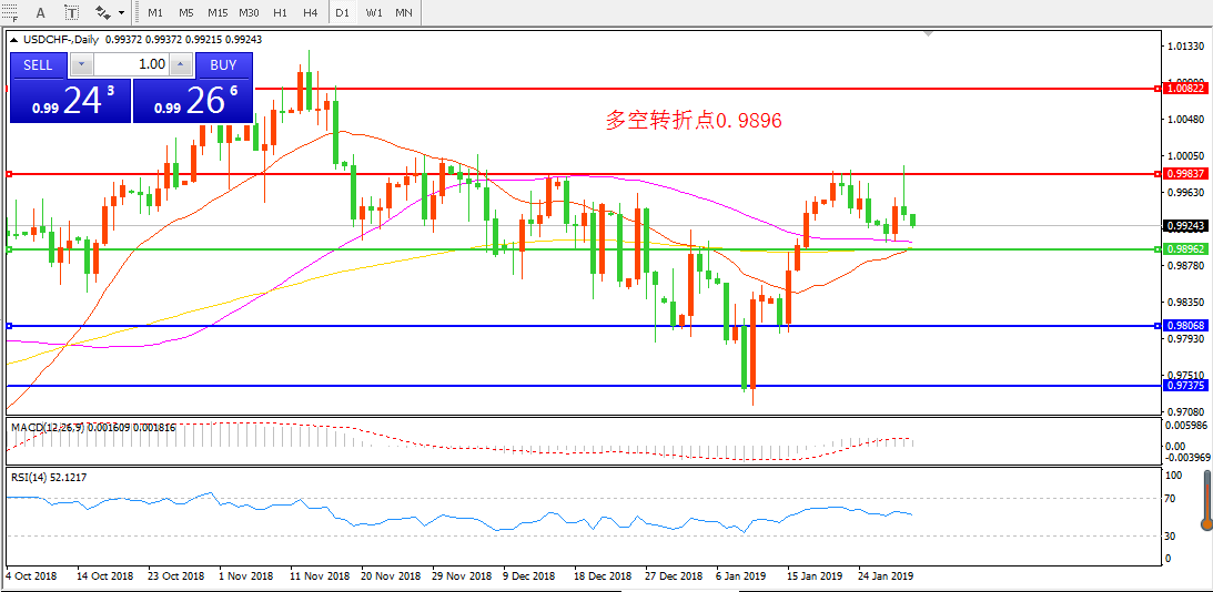 备选策略:在0.9896之下看跌,目标09806    0.9737