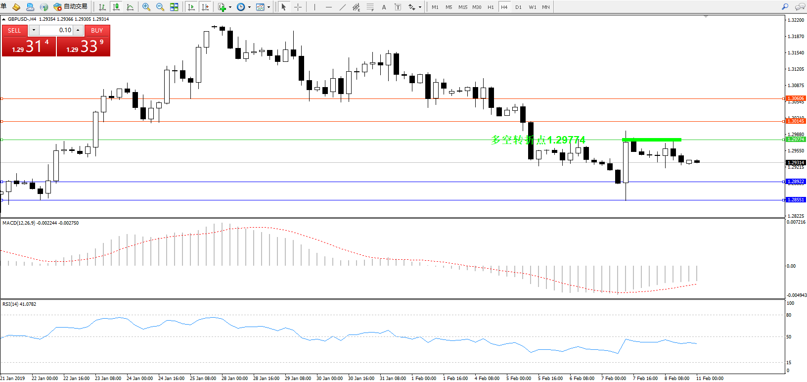 备选策略:1.29774上方看涨,目标1.30145、1.30606