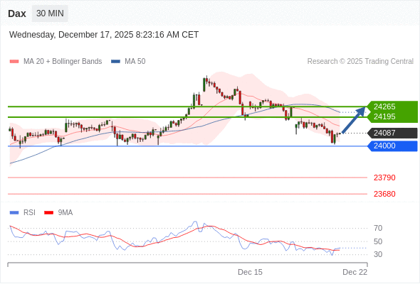 在 24000 之上,看涨,目标价位为 24195 ,然后为 24265 。