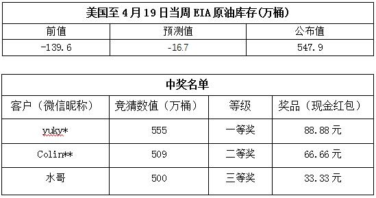 2019年4月第4期“EIA大竞猜”活动中奖公告