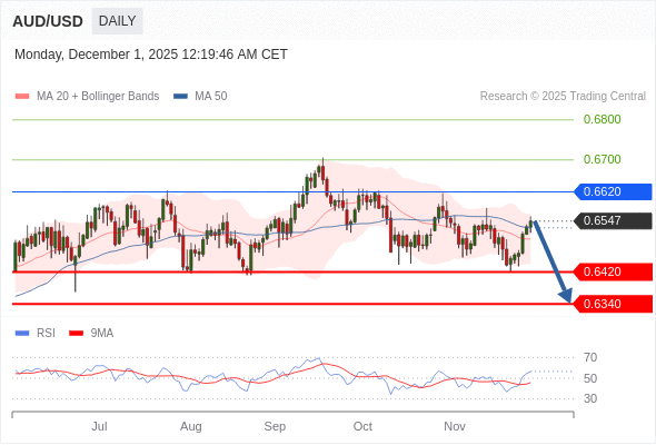 澳元/美元 短线: 短期关键阻力位在0.6620。