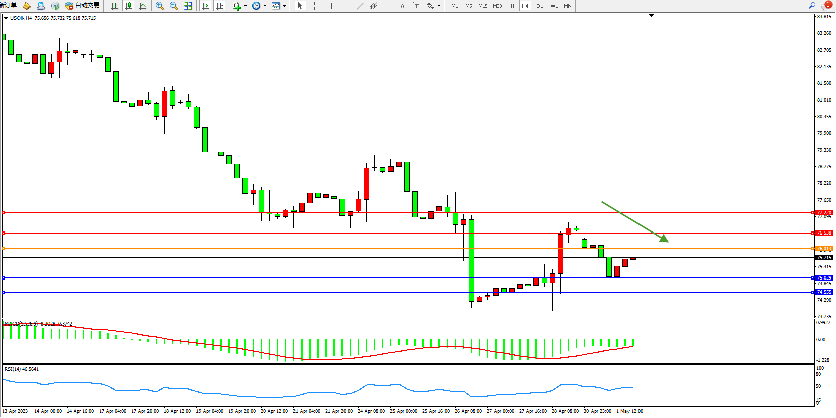 原油维持75.715附近震荡,国际油价下跌,对美联储可能加息的担忧足以抵消从本月起生效的石油输出国及其合作伙伴(OPEC+)最新减产带来的支撑。