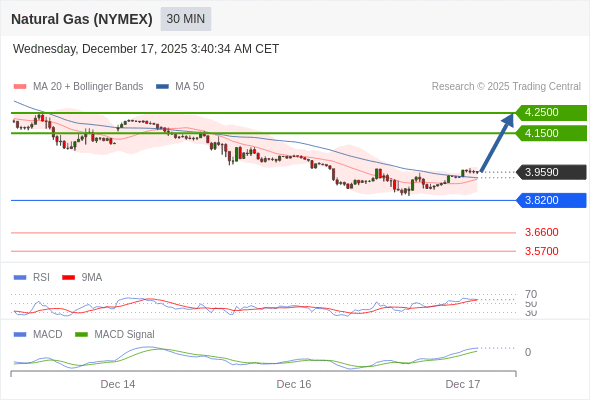 备选策略: 如跌破 3.8200 ,Natural Gas (NYMEX) (JAN6) 目标方向定在 3.6600 和 3.5700 。